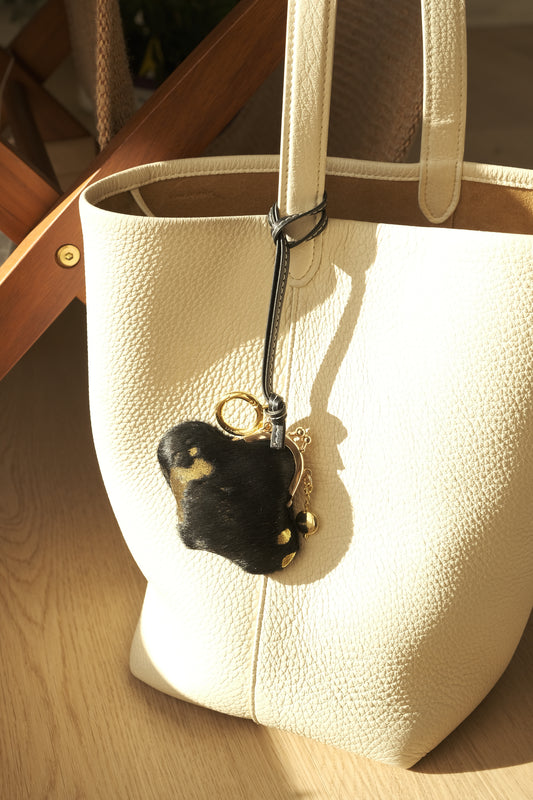 BLACK COW PATTERN HORSE HAIR HEART COIN PURSE / CHARM