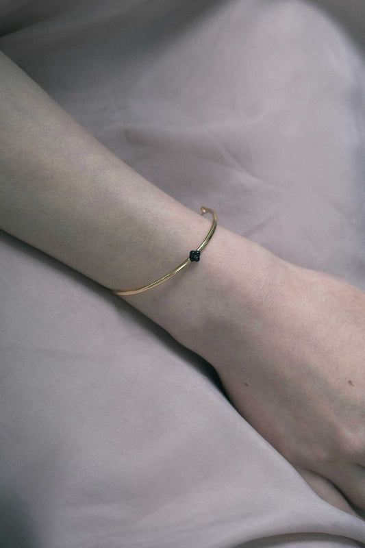 BLACK ENAMEL HEART BRACELET | 9K GOLD
