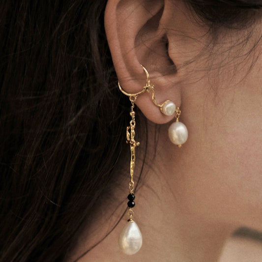 HANYING's ear and lip cuff collection merges unique hand-craftsmanship and natural beauty. Crafted with the finest natural freshwater pearls and 18K gold plated sterling silver, as well as hand painted enamel pieces which bring forth uniqueness to each individual.