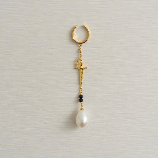 SWORD EAR CUFF WITH PEARL & BLACK CRYSTAL (Single)