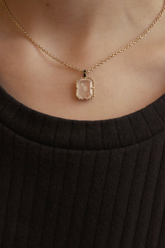 HANDCRAFTED PINK CRYSTAL ENGRAVED NECKLACE | 9K GOLD