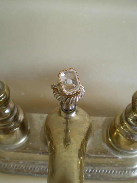 HANDCRAFTED PINK CRYSTAL ENGRAVED RING | 9K GOLD
