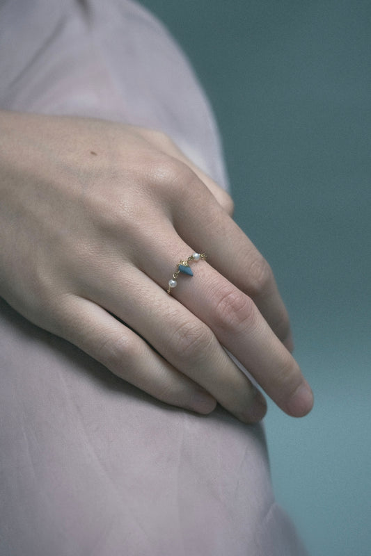 ERODED HEART THIN CHAIN RING (LIGHT BLUE) | 9K GOLD