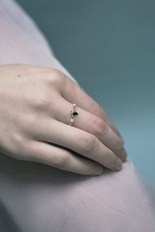 ERODED HEART THIN CHAIN RING (BLACK, GOLD) | 9K GOLD