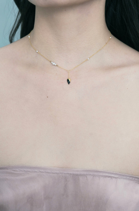 ERODED HEART THIN CHAIN NECKLACE (BLACK, GOLD) | 9K GOLD
