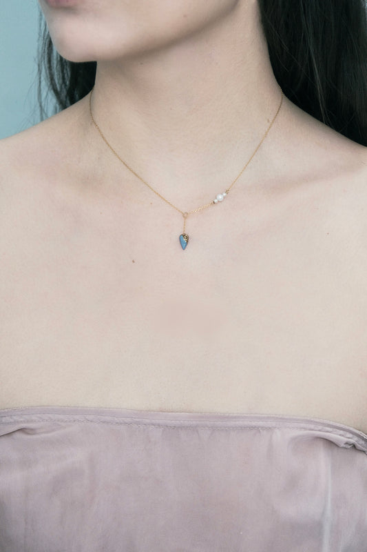 ERODED HEART THIN CHAIN NECKLACE (BLUE, GOLD) | 9K GOLD