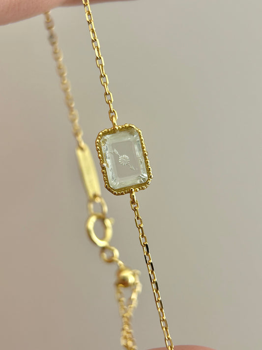 HANDCRAFTED PINK CRYSTAL ENGRAVED BRACELET | 9K GOLD