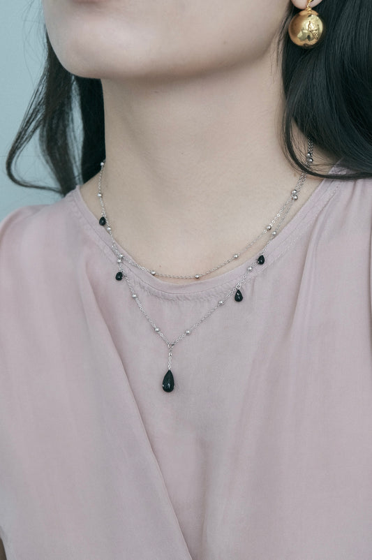 BLACK ENAMEL WATER DROP DOUBLE LAYER NECKLACE