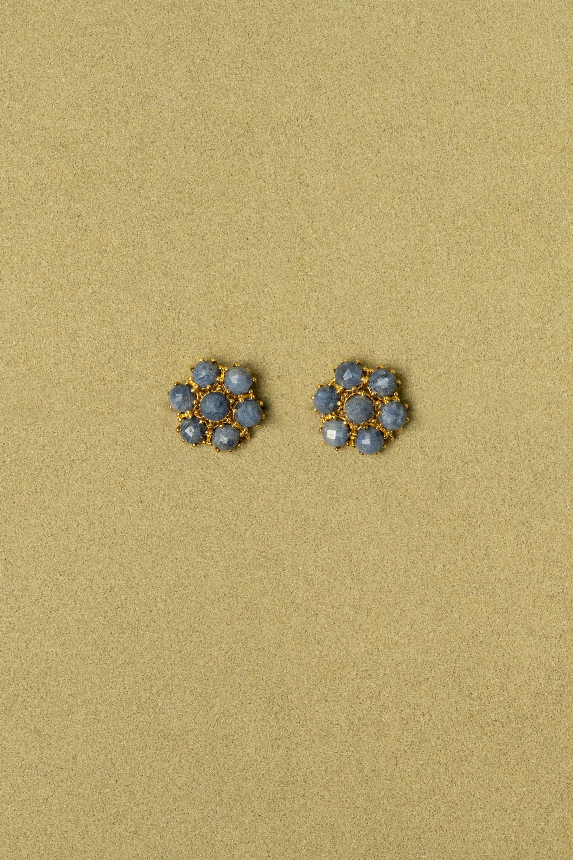 Delicate as a spring bloom, these stud earrings feature a circular cluster of faceted blue coral, echoing the charm of a flower in full blossom. The soft shimmer of the natural stones contrasts beautifully with the warm 18K gold plating, evoking a sense of both freshness and elegance.