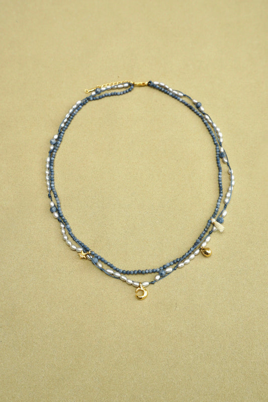 DOUBLE-LAYER MOON & STAR BLUE CORAL BEADED NECKLACE