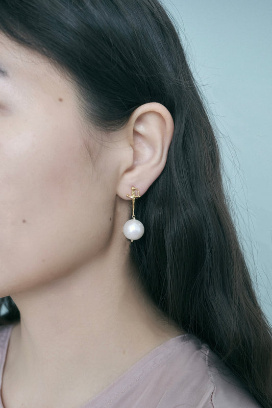 SaleBOW & SWORD PEARL EARRINGS