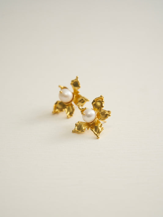 PEARL FLOWER EARRINGS (GOLD)