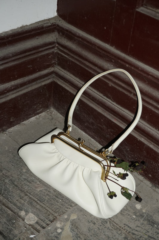 SaleWHITE PLEATED BAGUETTE HANDBAG