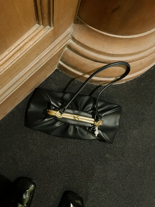 SaleBLACK PLEATED BAGUETTE HANDBAG
