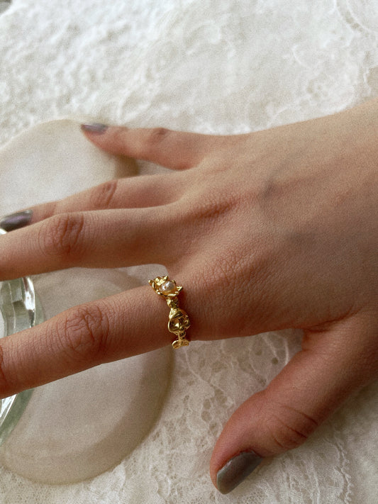 SaleGOLD FLORAL SKULL RING WITH PEARL